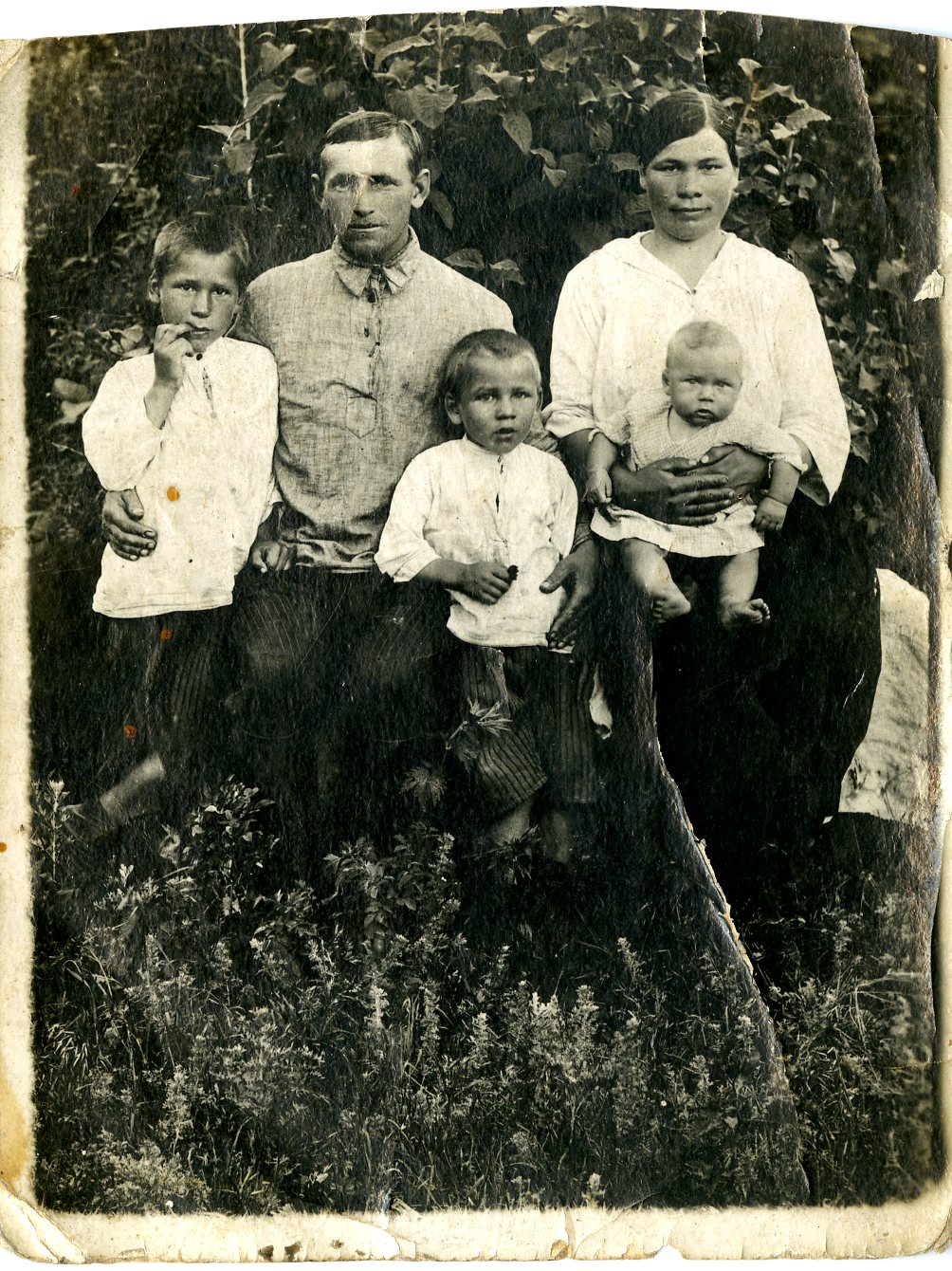 Anastasia Sushko with her husband and children. Krasnohirka, Kirovohrad region. 1930