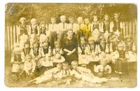 Іван Приймак серед вихованців дитячого садка с. Цапівці. Польща (нині с. Поділля, Заліщицький район, Тернопільська обл.) 1939