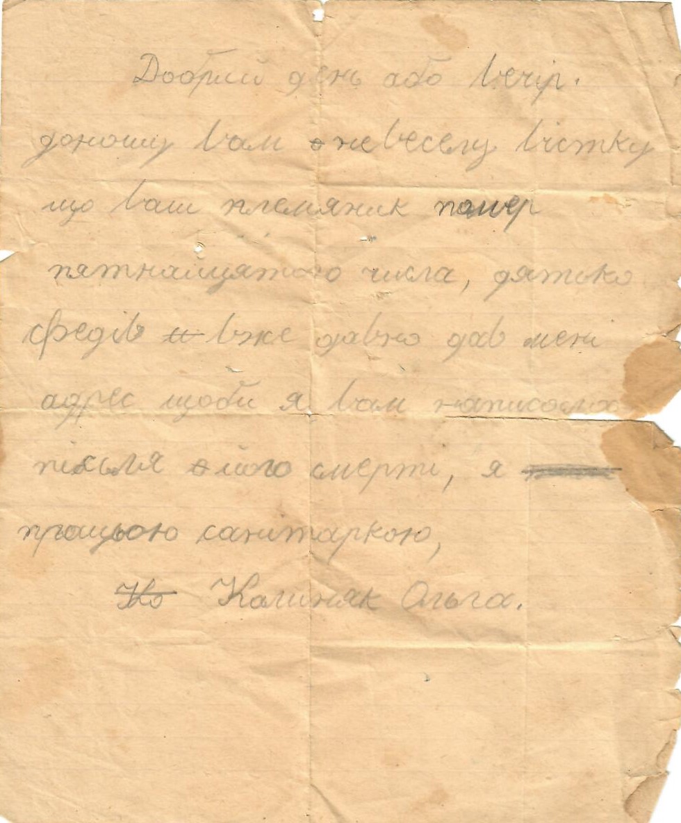 | Назва | Лист Ольги Калиняк рідним Івана Федова Letter from Olha Kalyniak to Ivan Fediv's family |
