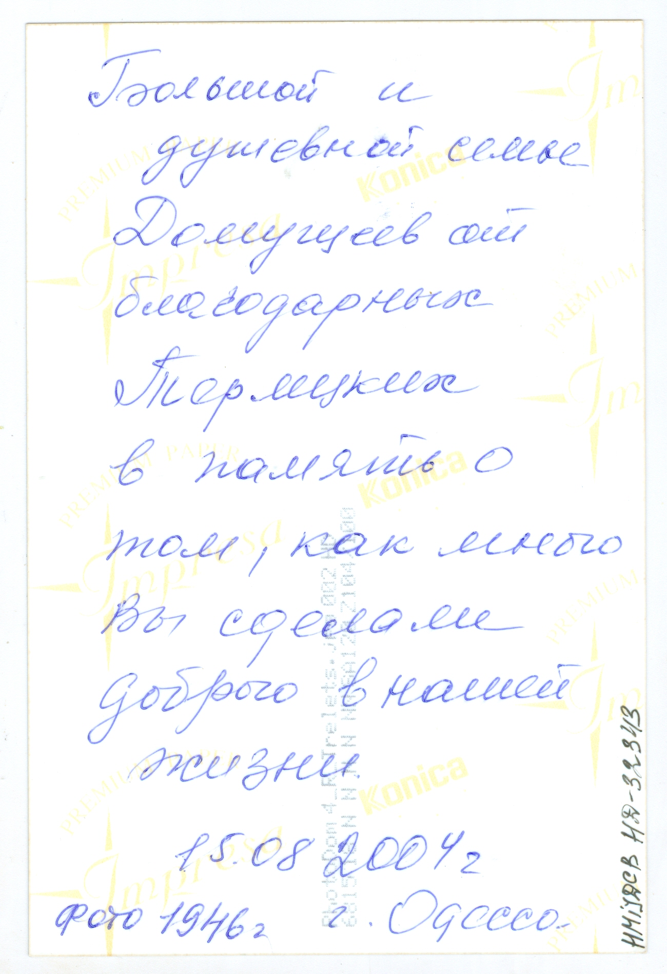 During the Nazi occupation, three Ukrainian families from Donetsk and Mykolaiv regions (Sosnovskyi, Domushchei, Chebanka) hid the Jews from Odesa – Anatoliy, Nataliya and their mother Ita Terletska. They were hidden in the basement, in the attic of a house and in the abandoned coal mine. After the war, Nataliya Sviatna (Terletska) collected the necessary materials to thank the rescuers. In 2004 the Domushcheis was awarded the title of “Righteous Among the Nations”