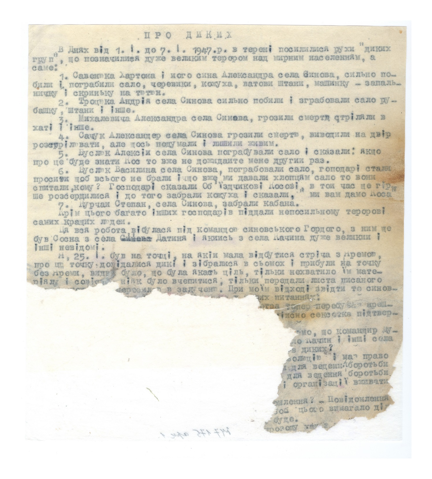 Зведення. Про «диких» (фрагмент). 20.02.1947